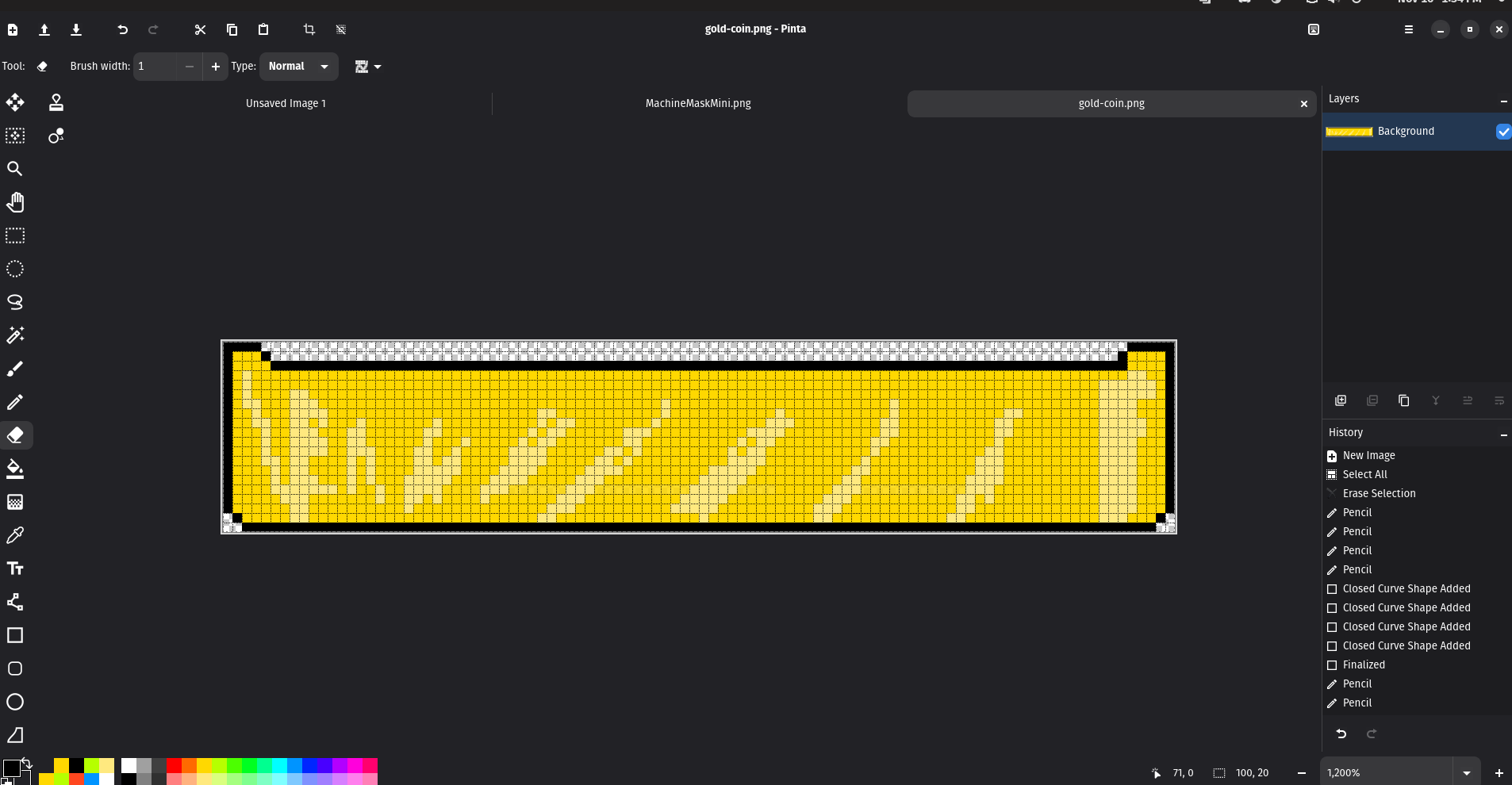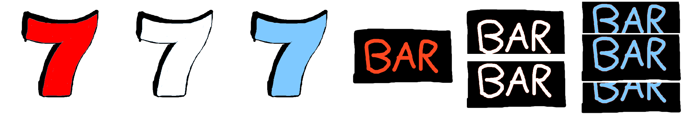 I upscaled our 32x18 pixel mask to 1280x720, which led to that faded effect. Then just added in boxes and doodled in silly things. I figure that noting that the red white and blue seven combo will win you a bunch of coins is important to call out, and we had a bunch of screen real estate on the right side, so it just seemed correct to do. I'm not much of a dark pattern type person, so I can't really think of anything sketchy to do here.