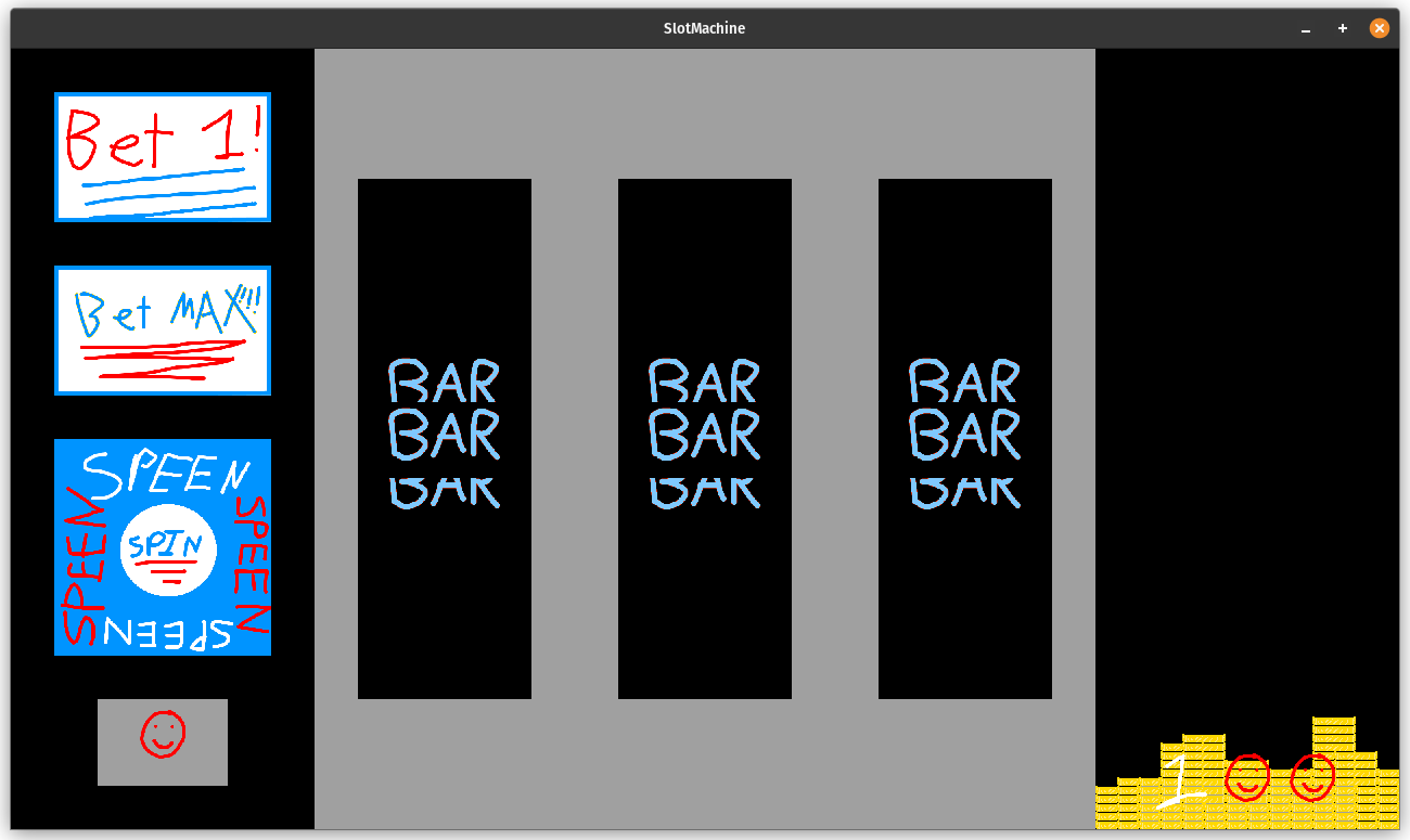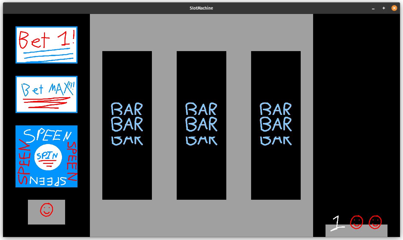 The title screen here is going to be very, very similar to the end screen. We'll have two buttons and a background. So, it's off to the painting program again and also, I suppose I need to come up with a better name for the game than "slot machine"? Maybe?