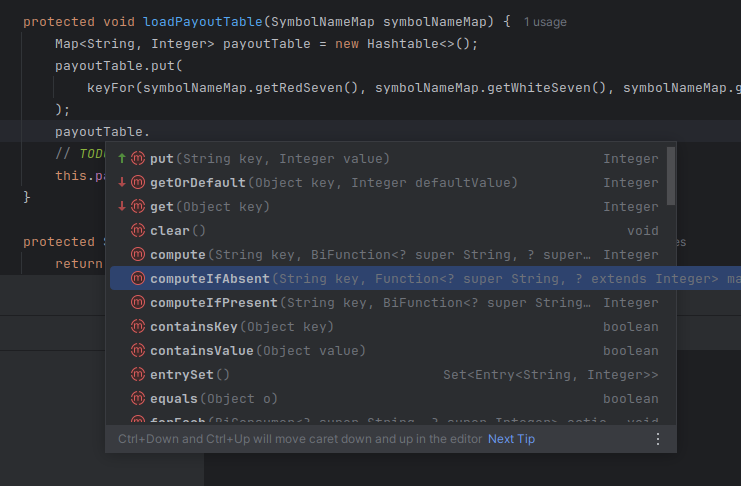 Getting our code base started, I'm going to define the 7 possible symbol names in a look up table. You might ask why the extra layer of indirection here, but trust me, it will all make sense later, promise. For now, let's define our mapping in plain simple Java: