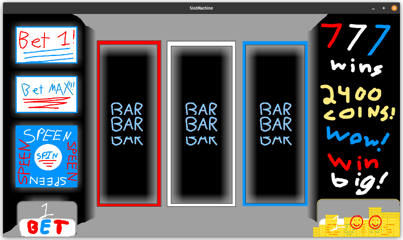 I think it bears repeating, I am not an artist. But, here we go. The machine that will definitely make people stop and wow at its splendor. Truly, a gambling machine above all gambling machines that makes people take notice: